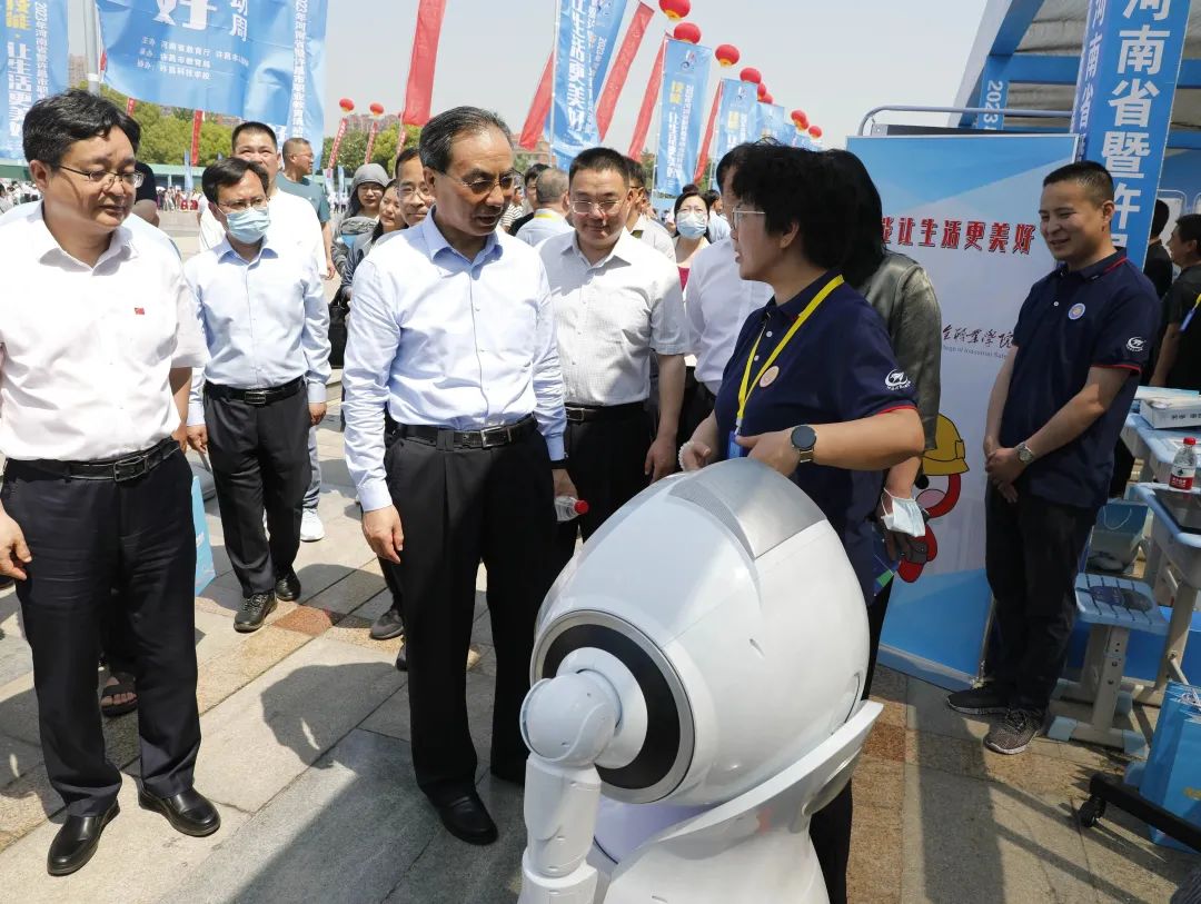 5月14日,2023年河南省暨许昌市职业教育活动周启动仪式在许昌市举行。省委教育工委专职副书记尹洪斌,河南中华职业教育社副主任、省人大常委会原副秘书长张晓林,省人力资源和社会保障厅二级巡视员吕志华,省教育厅二级巡视员董玉民,许昌市政府副市长赵鹏出席启动仪式,全省各职业院校师生代表,行业、企业代表等800余人参加启动仪式。