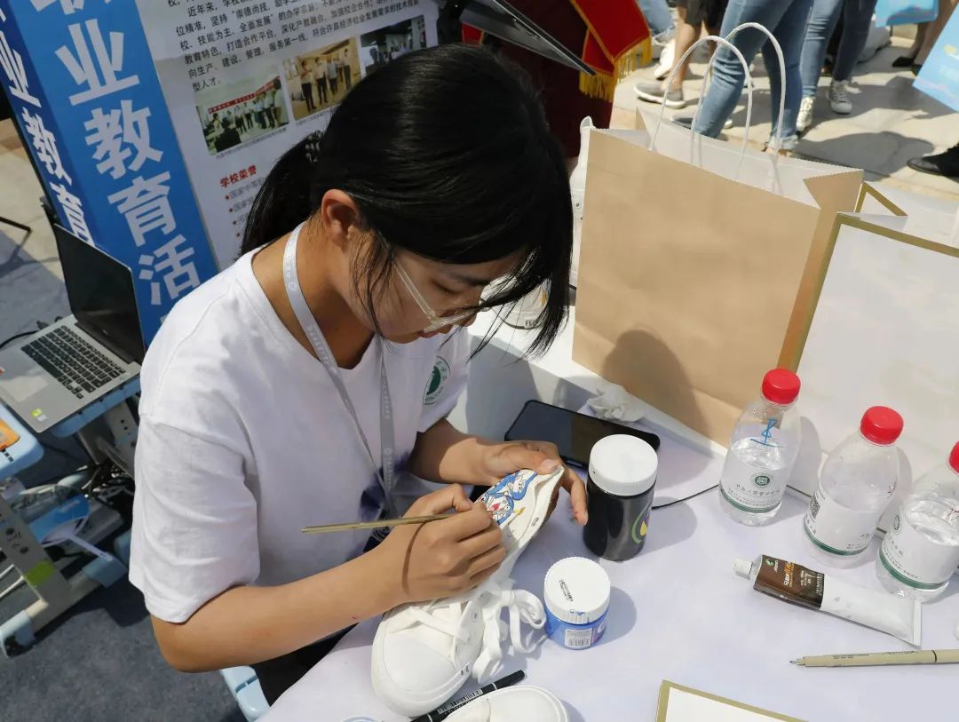 启动仪式结束后,与会领导、嘉宾一同参观了我省职业教育成果展示。各参展单位通过展板、专业技能展示、技能展演等形式,展示学校专业特色、教学成果等特色项目,吸引众多观众驻足观看。